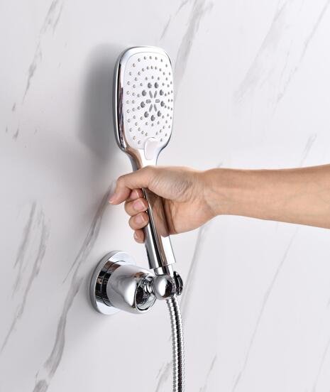A drill free handheld showerhead holder also called as adjustable shower head holder is a device that you can use to affix your high pressure shower head to the wall, without the need for tools or drilling. This is especially useful if you’re renting and don’t want to damage the property. It’s also great for those who want to avoid making holes in their walls. The shower head holder typically consists of two parts: a bracket that attaches or is mounted to the wall, and a plastic piece that the shower head clips into. There are also suction cup holders,what we are going to introduce today would be a drill-free reallocatable shower holder. available, When choosing a handheld showerhead holder, be sure to select one that is compatible with your particular shower head. You’ll also want to ensure that it can support the weight of your shower head so that it doesn’t fall and break.