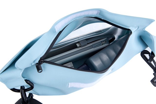At first glance, this backpack captivates with its clean, functional design. The entire body is wrapped in waterproof PVC fabric, its fine texture and sturdy stitching speaking to its quality. Wear it as a cross body bag, adjust the shoulder straps to use it as a chest bag, or even detach the straps entirely to turn it into a waterproof storage pouch inside your larger backpack.